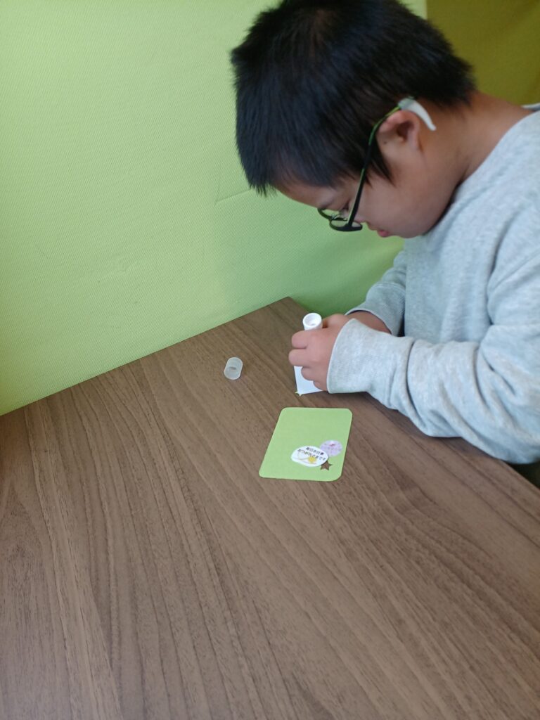 ・メッセージを考える事が苦手なお子さんには、見本のメッセージを数パターン用意して、どれが良いか、自己選択してもらう。