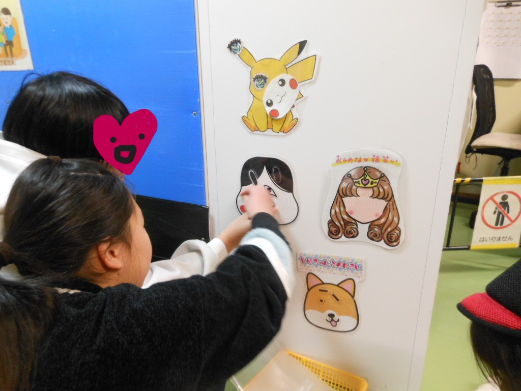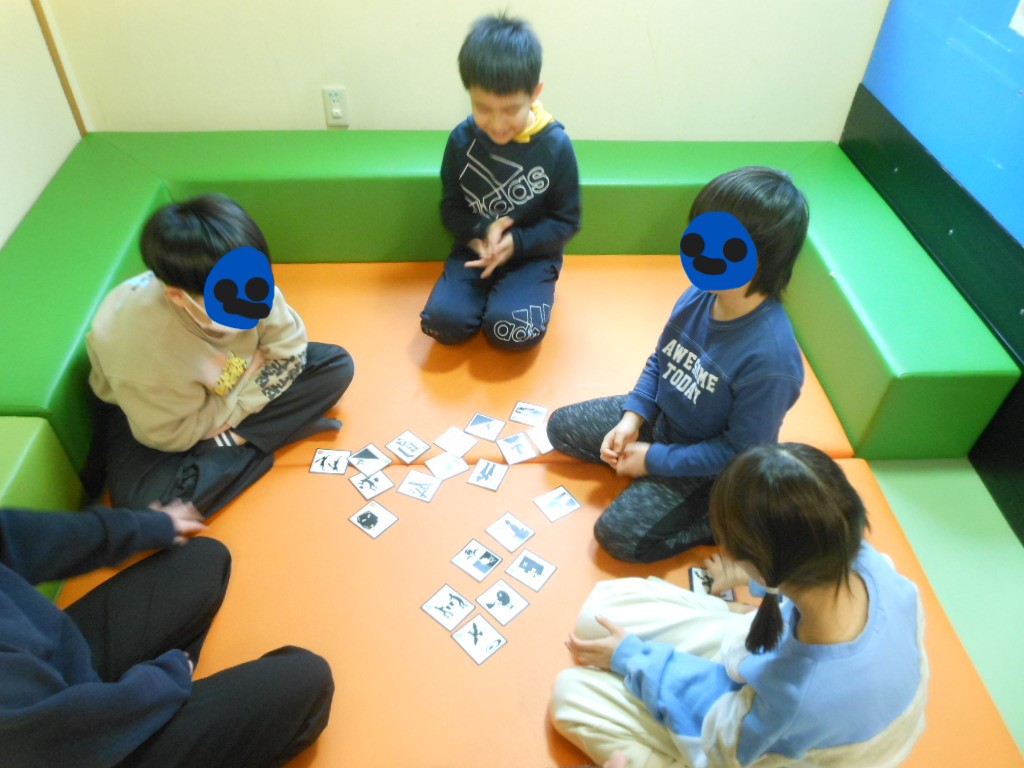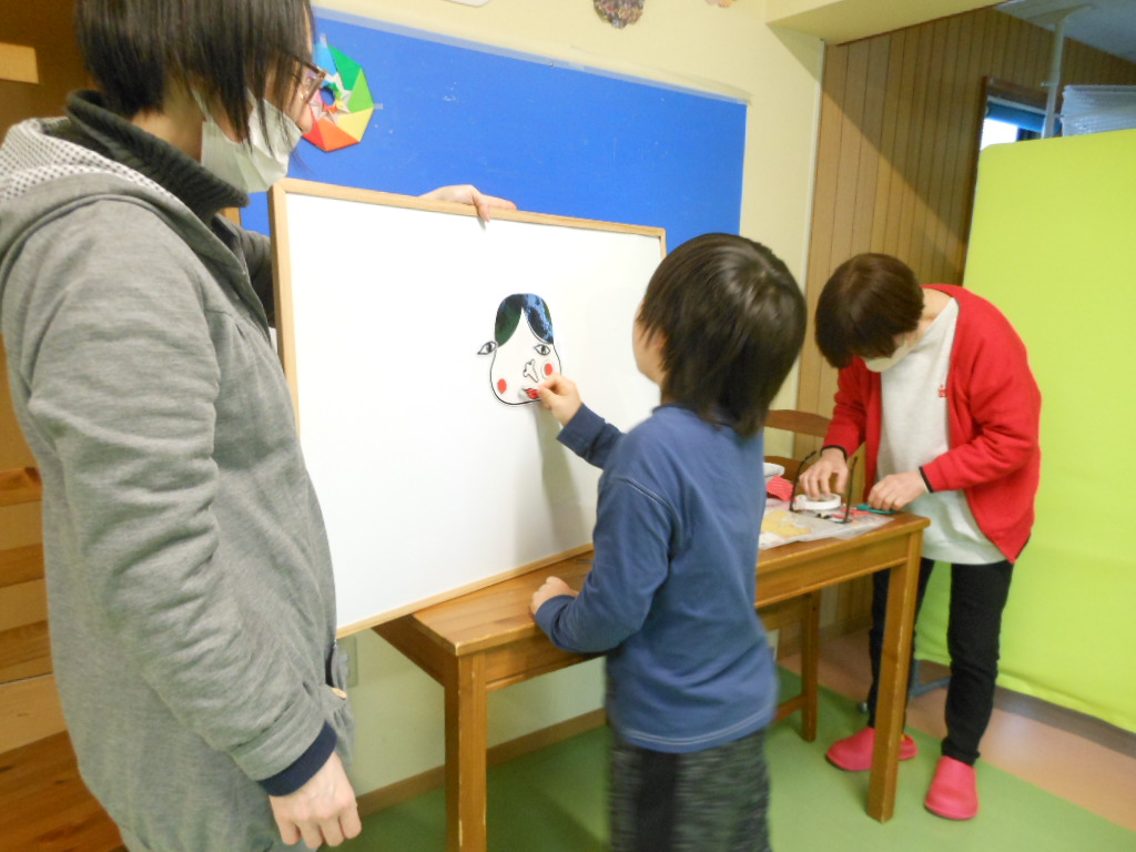 お正月遊びを1月5日と6日に行いました。福笑いと、ことわざかるたをしました。福笑いは、4種類用意して、好きなものを選んでもらいましたよ。