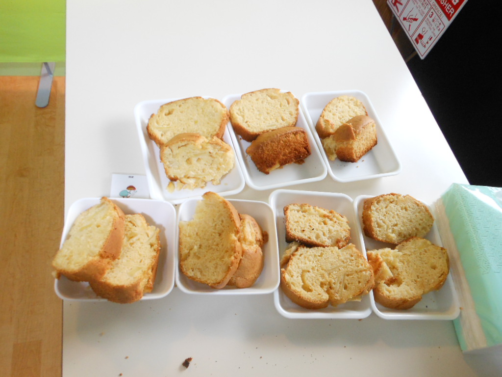 というわけで、たくさんの子供達のお手伝いのおかげで無事に完成しました~!早速3時のおやつで食べました。美味しくてあっという間に食べちゃう子、良く味わって食べる子、お口に合わなかったのか手が進まなくていつものおやつを食べた子、あまりの美味しさに隣の子の分まで食べちゃった子…十人十色でした。
