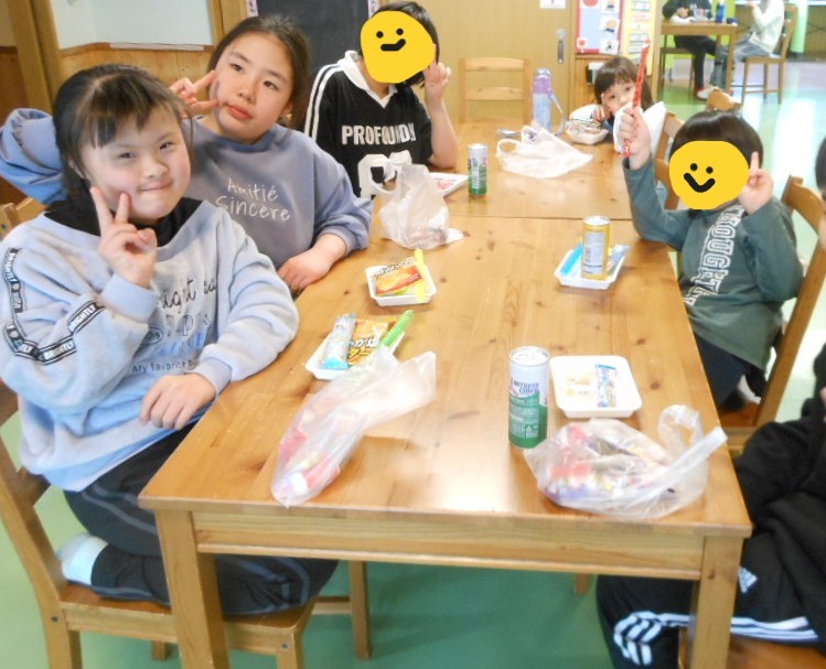 新しいお店でのお買い物、緊張した子も自分で選んだお菓子を沢山買えておやつの時間は笑顔の元気な声で「いただきまーす」。これからも色々な体験一緒にしていきましょうね♡