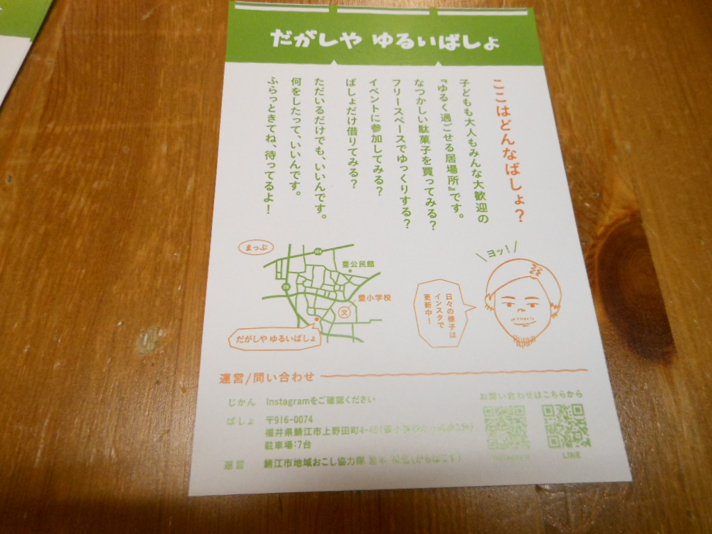 3月31日に鯖江市にある、ゆるいばしょさんへ駄菓子を買いに行きました。