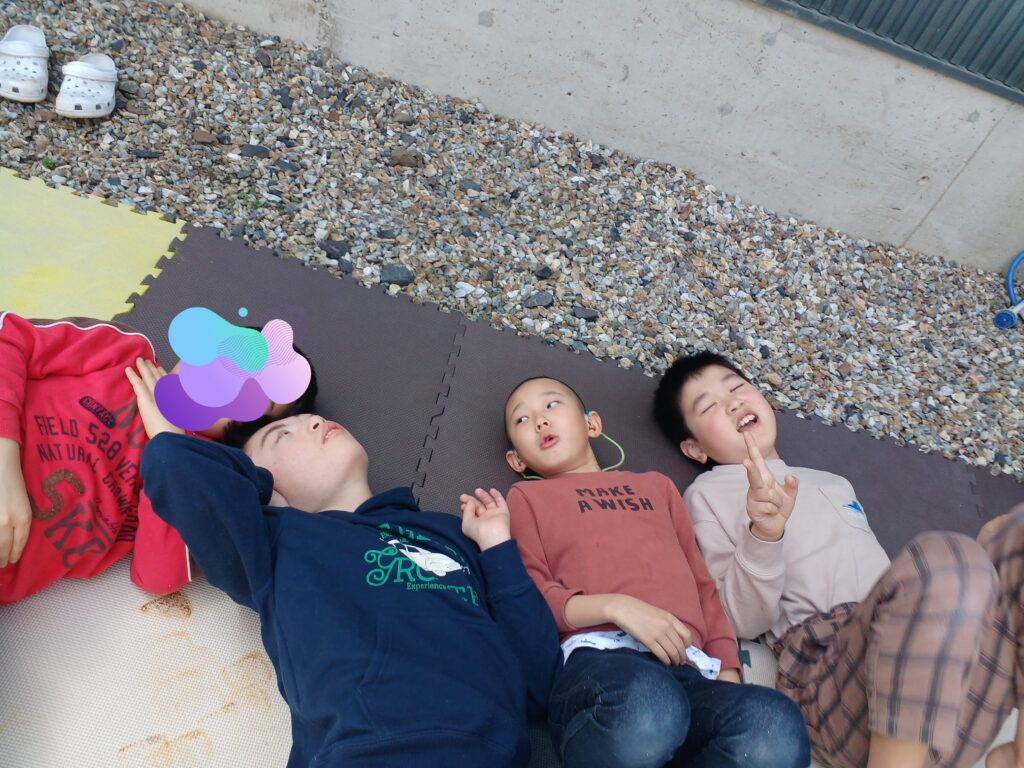 2026.04.10 未分類ichibankaigo 希星☆ひなたぼっこ☀️ こんにちは!放課後等デイサービス希星です。 今日は春休み期間中のみんなでのんびり過ごした様子をお届けしたいと思います! 天気が良く暖かかったのでプレイル-ムに出入り口ででひなたぼっこをする子どもがちらほら… そこで、くつろげるように裏庭にマットを敷くと室内にいた全員が出てきてくれました😊 せっかく外にいるということで、プレイルームでお菓子屋さんをオープン! ピクニック気分でおやつを食べました🎶 おやつの後も飛行機雲を眺めたり、本を読んだりとのんびり過ごす子供たちでした😊